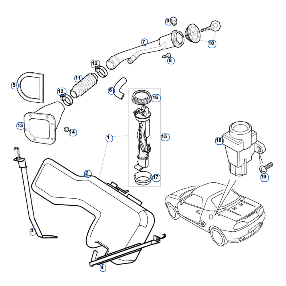 Categorieën Benzinetank & Pomp MGF/TF, Brandstofsysteem MGF/TF, MGF - MG TF